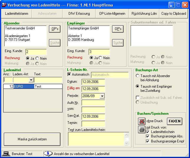 Lademittelerfassungsmaske oder automatisch bei der Sendungserfassung gebucht