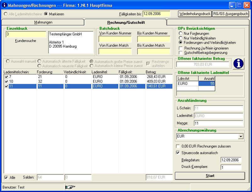 - Wird durch dieses Programm eine Lademittelrechnung erzeugt, werden die